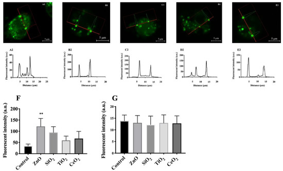 2.3. Effects of NP and SiO2 on Lysosomal Membrane Potential