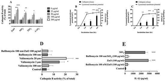 - Bunderson-Schelvan, M.; Holian, A.; Hamilton, R.F., Jr. Engineered nanomaterial-induced lysosomal membrane permeabilization and anti-cathepsin agents. J. Toxicol. Environ. Health B Crit. Rev. 2017, 20, 230–248. [Google Scholar] [CrossRef]