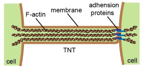 - Austefjord, M.W.; Gerdes, H.H.; Wang, X. Tunneling nanotubes: Diversity in morphology and structure. Commun. Integr. Biol. 2014, 7, e27934. [Google Scholar] [CrossRef]