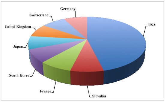 Glycolipids are the most common and popular microbial biosurfactants [68] with the largest number of companies dedicated to their production. The most common glycolipids are rhamnolipids and sophorolipids. Sophorolipids are produced by Evonik (Slovenská Ľupča, Slovakia), Groupe Soliance (Pomacle, France), MG Intobio Co. Ltd. (Incheon, South Korea), Synthezyme LLC (Rensselaer, NY, USA) and Saraya Co. Ltd. (Osaka, Japan); whereas rhamnolipids are produced by Logos Technology (Fairfax, VA, USA), TeeGene Biotech (Redcar, United Kingdom), AGAE Technologies LLC (Corvallis, OR, USA), Glycosurf (Park City, UT, USA), Biotensidon GmbH (Zug, Switzerland), Jeneil Biosurfactant Co. LLC (Saukville, WI, USA), Rhamnolipid Companies, Inc. (St. Petersburg, FL, USA) and Henkel (Düsseldorf, Germany). Figure 1 shows the distribution of companies that commercialize microbial biosurfactants, revealing that the market is dominated by the United States. In Europe, only four countries are considered microbial biosurfactants producers: Slovakia, France, Switzerland and Germany.