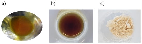 Macroscopic appearance of (a) lipopeptide, (b) rhamnolipid and (c) glycolipopeptide microbial biosurfactants.