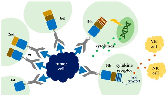 - Chmielewski, M.; Abken, H. Trucks, the fourth-generation car t cells: Current developments and clinical translation. Adv. Cell Gene Ther. 2020, 3, e84. [Google Scholar] [CrossRef]