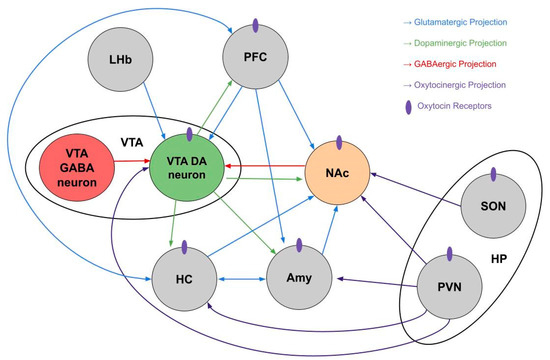 121. Tang, Y.; Chen, Z.; Tao, H.; Li, C.; Zhang, X.; Tang, A.; Liu, Y. Oxytocin activation of neurons in ventral tegmental area and interfascicular nucleus of mouse midbrain. Neuropharmacology 2014, 77, 277–284. [Google Scholar] [CrossRef]