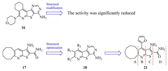 - Lockman, J.W.; Reeder, M.D.; Suzuki, K.; Ostanin, K.; Willardsen, J.A. Inhibition of eEF2-K by thieno[2,3-b]pyridine analogues. Bioorg. Med. Chem. Lett. 2010, 20, 2283–2286. [Google Scholar] [CrossRef]