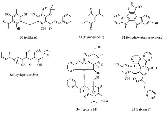 | 30 | rottlerin | NPDD | NA | [96,97,98,99,100,101,102,103,104,105,106] |
