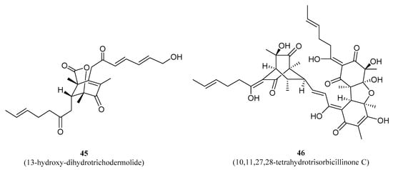 | 46 | 10,11,27,28-tetrahydro- trisorbicillinone C | NPDD | Recent | [123] |