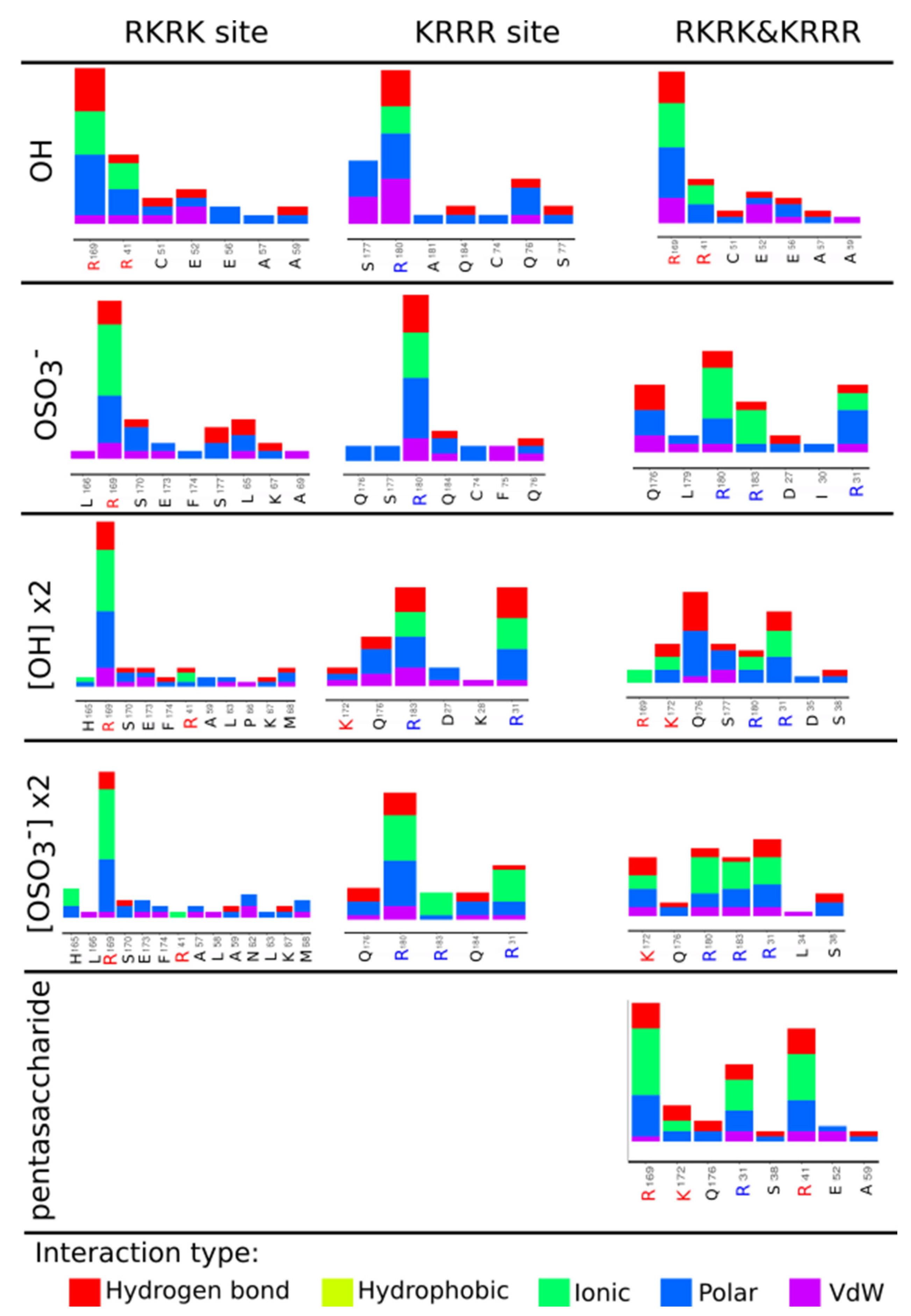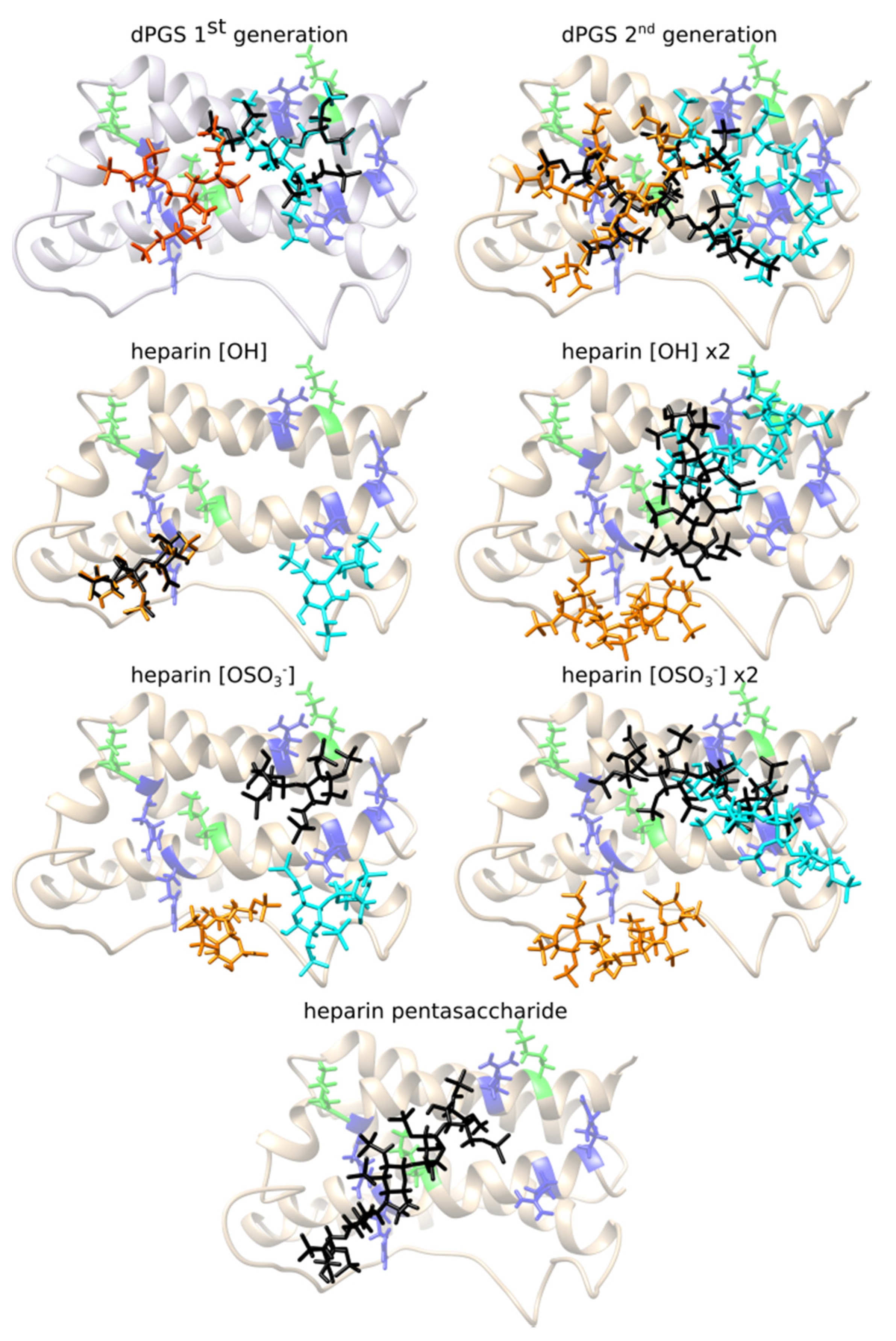 | Heparin disaccharide subunit [OSO3−] x2 30 torsions | −6.2 kcal/mol | −5.5 kcal/mol | −6.0 kcal/mol |