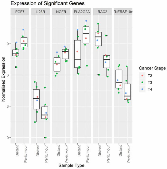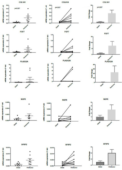 2.2. Cancer-Related Gene Expression in Peritumour Adipose Tissue and Distal Adipose Tissue