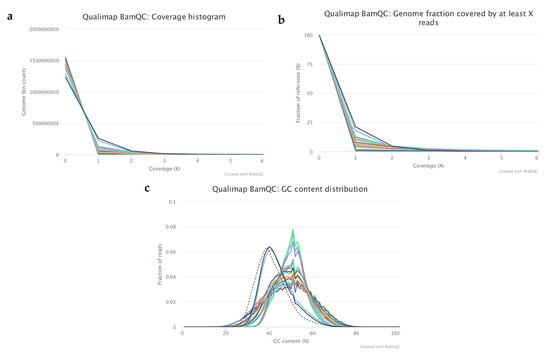 - Okonechnikov, K.; Conesa, A.; García-Alcalde, F. Qualimap 2: Advanced multi-sample quality control for high-throughput sequencing data. Bioinformatics 2016, 32, 292–294. [Google Scholar] [CrossRef] [PubMed]