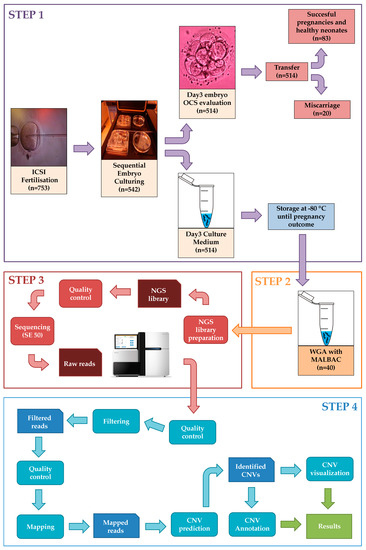 The developed comprehensive workflow shows the entire clinical procedure of IVF, the embryo culture and the wet-lab handling and dry-lab bioinformatics steps of sample processing (Figure 5). The following sections briefly describe the main steps of our proposed workflow applied to the 40 selected samples.