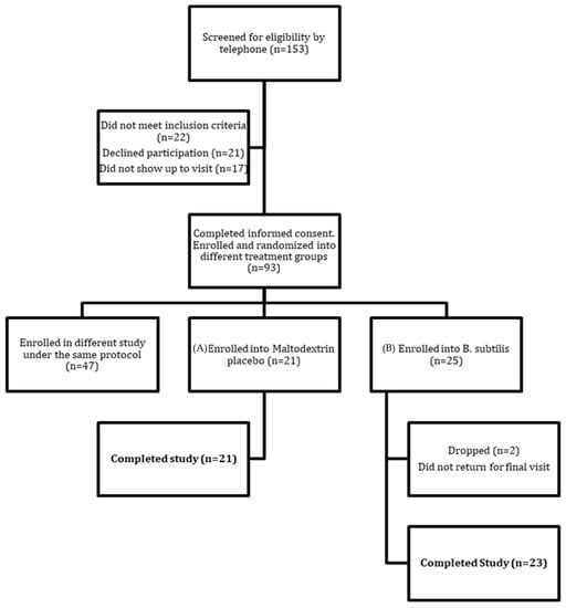 - Hanifi, A.; Culpepper, T.; Mai, V.; Anand, A.; Ford, A.L.; Ukhanova, M.; Christman, M.; Tompkins, T.; Dahl, W. Evaluation of Bacillus subtilis R0179 on gastrointestinal viability and general wellness: A randomised, double-blind, placebo-controlled trial in healthy adults. Benef. Microbes 2015, 6, 19–27. Available online: https://pubmed.ncbi.nlm.nih.gov/25062611/ (accessed on 4 December 2020). [CrossRef]