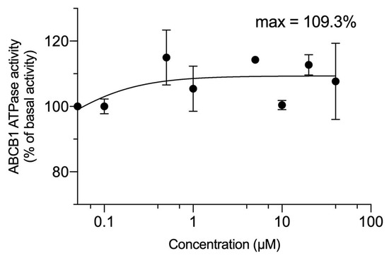 VKNG-2 stimulated the ATPase activity of ABCB1. The graph illustrates the effect of 0–100 µM of VKNG-2 on the ATPase activity of ABCB1.