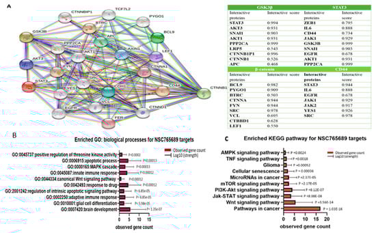 2.3. GSK3β/β-Catenin/STAT3/CD44 Are Potential Druggable Candidates for NSC765689