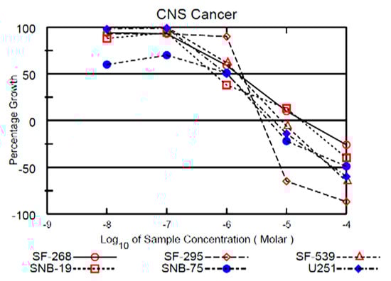 4.4. In Vitro Screening Of NSC765689 against the Full NCI-60 Cell Panels of Human Tumor Cell Lines
