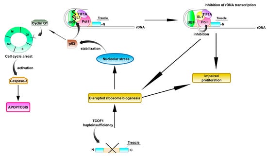 - Valdez, B.C.; Henning, D.; So, R.B.; Dixon, J.; Dixon, M.J. The Treacher Collins syndrome (TCOF1) gene product is involved in ribosomal DNA gene transcription by interacting with upstream binding factor. Proc. Natl. Acad. Sci. USA 2004, 101, 10709–10714. [Google Scholar] [CrossRef]