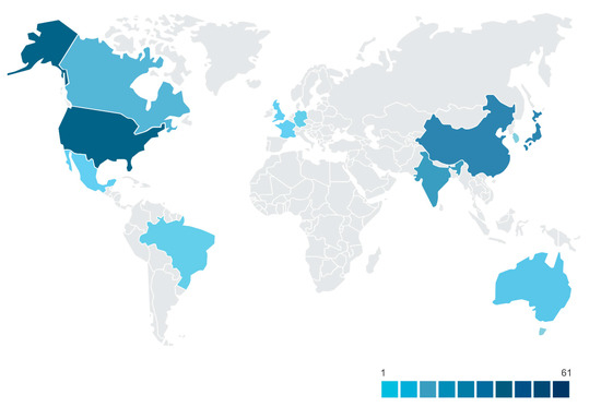 The USA is still the country with the highest protection, showing a trend in the market and the pharmaceutical industry to use this technology. Protection also occurs in China, India, Canada, and Brazil (Figure 4).