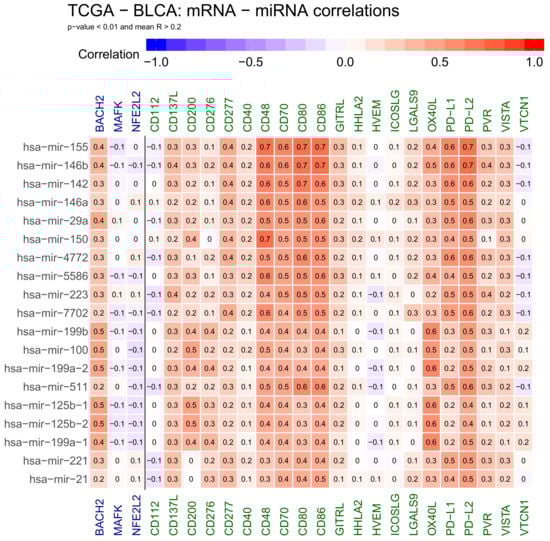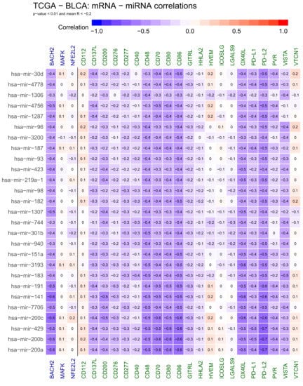 2.1. Correlations Analyses in Bladder Cancer Samples—Genes mRNA to miRNA