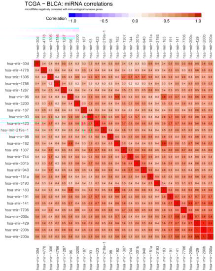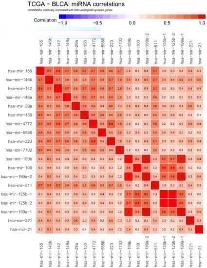 2.3. Correlations Analyses in Bladder Cancer Samples—miRNA to miRNA