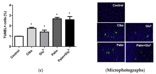 Under experimental conditions of high glucose and palmitate, apoptosis was also induced via both cascades and ER stress, and the insulin production in response to glucose was also negatively affected. Most of these effects were more pronounced when the cells were treated with a combination of the two stimuli.
