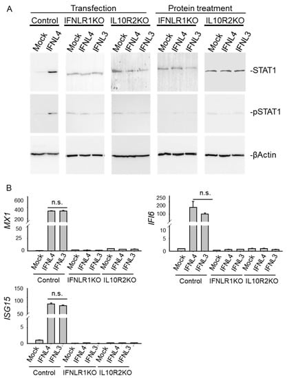 2.4. IFNLR1 and IL10R2 Deficiency Abolished JAK-STAT Signaling by Both IFNL3 and IFNL4