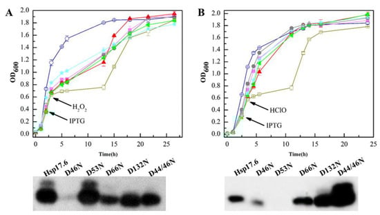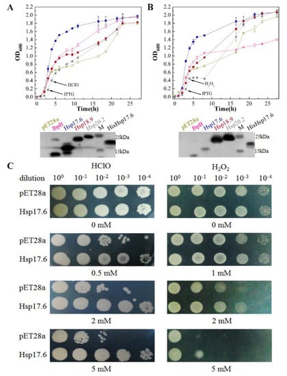 2.2. Hsp17.6 Overexpressed E. coli Gained Higher Survivability in Oxidants