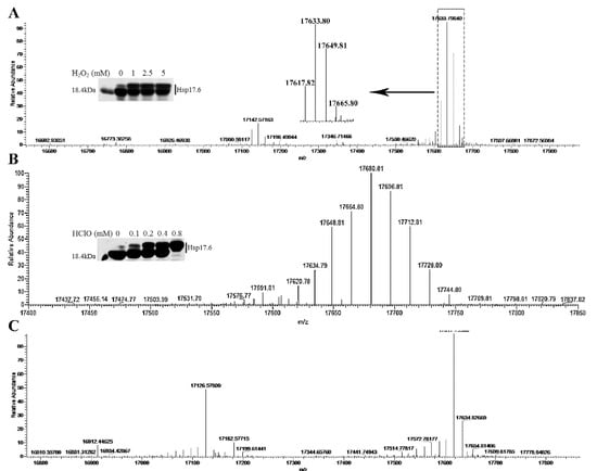 2.5. Mass Spectrometry Detected the Oxidized Amino Acid Residues of Hsp17.6