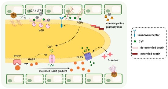 - Palanivelu, R.; Brass, L.; Edlund, A.F.; Preuss, D. Pollen Tube Growth and Guidance Is Regulated by POP2, an Arabidopsis Gene that Controls GABA Levels. Cell 2003, 114, 47–59. [Google Scholar] [CrossRef]