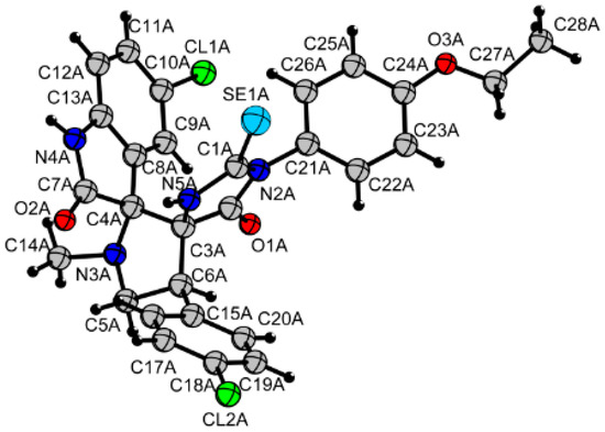 Molecular structure of compound 5b (CCDC 1999058; one crystallographically independent molecule is shown; the designations of the second independent molecule in the Supplementary Information are similar (NN_B)).