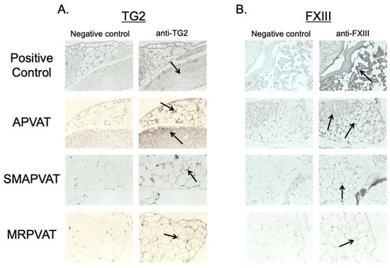 2.2. TG2 and FXIII Proteins Were Present in PVATs