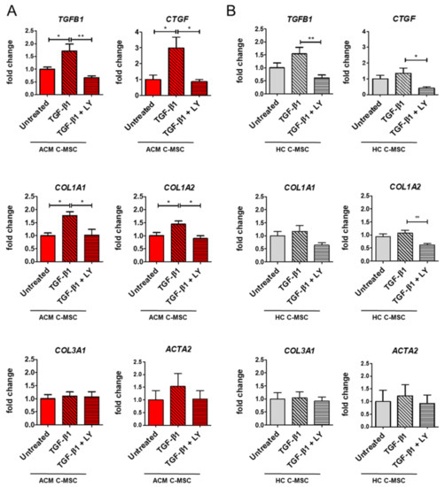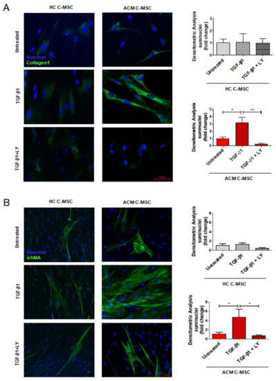 2.3. TGF-β1 Stimulation Drives Pro-Fibrotic Differentiation of Cardiac Mesenchymal Stromal Cell from Arrhythmogenic Cardiomyopathy Patients
