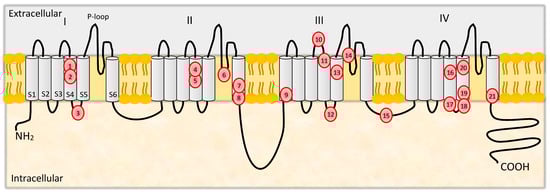 - Dichgans, M.; Freilinger, T.; Eckstein, G.; Babini, E.; Lorenz-Depiereux, B.; Biskup, S.; Ferrari, M.D.; Herzog, J.; Maagdenberg, A.M.J.M.V.D.; Pusch, M.; et al. Mutation in the neuronal voltage-gated sodium channel SCN1A in familial hemiplegic migraine. Lancet 2005, 366, 371–377. [Google Scholar] [CrossRef]