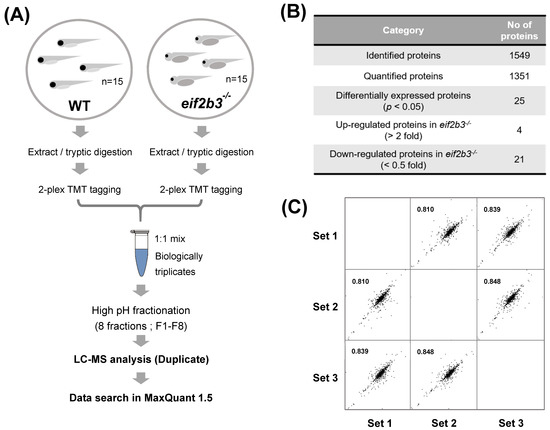 2.2. Comparative Proteome Analysis of eif2b3−/− Compared to Wild-Type