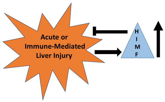 In LPS-induced lung injury, HIMF was upregulated and stimulated VCAM-1 expression and mononuclear cell sequestration, while preventing an LPS-induced Surfactant C decrease and cell death of alveolar cells [76]. In acute lung injury, bone marrow mesenchymal stem cells improve lung injury independently of HIMF, since HIMF-expressing mesenchymal stem cells increased lung edema and leukocyte infiltration [77]. To summarize, HIMF action in the lung primarily settles around Th2 inflammation via IL-4 and IL-13 and these mechanisms are responsible for the induction of immune-mediated liver injury. However, whether or not HIMF or Th2 inflammation in the lung has a similar role in immune-mediated liver injury is unknown.