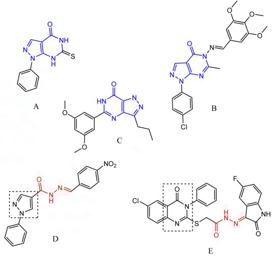 - Gong, P.; Zhao, Y.F.; Wang, D. Synthesis and vasodilatory activities of new pyrazolo[3,4- d]pyrimidin-4-one derivatives. Chin. Chem. Lett. 2002, 13, 613–616. [Google Scholar]