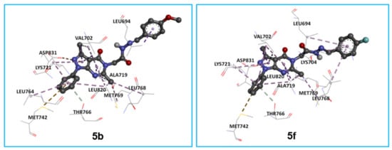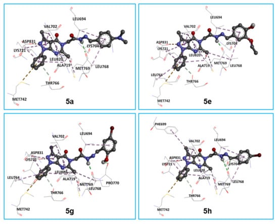 2.3.1. In Silico Molecular Docking of 5a, 5e, 5g, and 5h as Epidermal Growth Factor Receptor Tyrosine Kinase Inhibitors