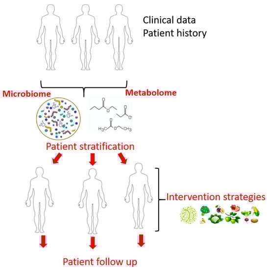 We show here that several methods to tailor the host microbiota have good potential in improving T1DM outcome. We believe that combining traditional sources of medical information (i.e., laboratory workup, patient history) with data emerging from omic technologies (i.e., microbiome, metabolome) will enable patient stratification subsequently aiding the clinician to choose the appropriate intervention strategies (diet, probiotics, fecal transplant etc.). It is imperative to make the transition from the lab to the clinic so that we can help deliver precision medicine to individual patients (Figure 2). Moreover, a patient follow-up after the intervention is crucial.