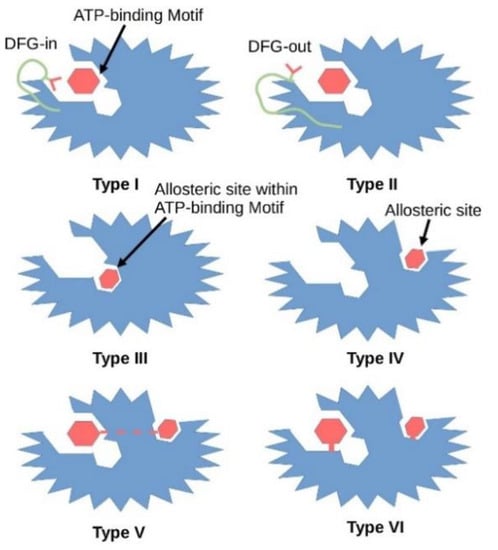- Wu, P.; Clausen, M.H.; Nielsen, T.E. Allosteric small-molecule kinase inhibitors. Pharmacol. Ther. 2015, 156, 59–68. [Google Scholar] [CrossRef] [PubMed]