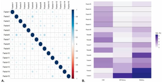 - Argelaguet, R.; Velten, B.; Arnol, D.; Dietrich, S.; Zenz, T.; Marioni, J.C.; Buettner, F.; Huber, W.; Stegle, O. Multi-omics factor analysis-a framework for unsupervised integration of multi-omics data sets. Mol. Syst Biol. 2018, 14, e8124. [Google Scholar] [CrossRef]
