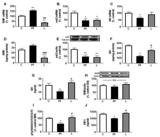 2.2. Effects of Food Deprivation and Leptin Infusion on the GH/IGF-I Axis