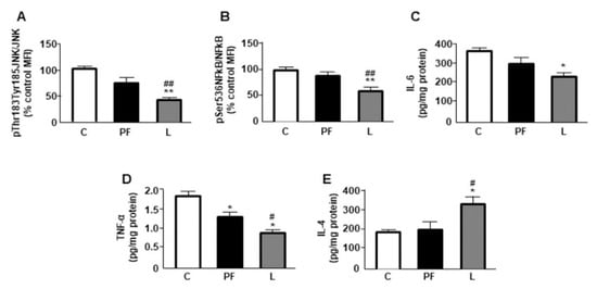 2.5. Central Leptin Infusion Effects on BAT Inflammatory Markers
