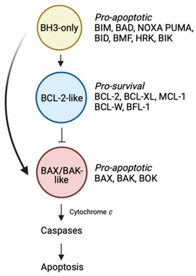 - Singh, R.; Letai, A.; Sarosiek, K. Regulation of apoptosis in health and disease: The balancing act of BCL-2 family proteins. Nat. Rev. Mol. Cell Biol. 2019, 20, 175–193. [Google Scholar] [CrossRef]