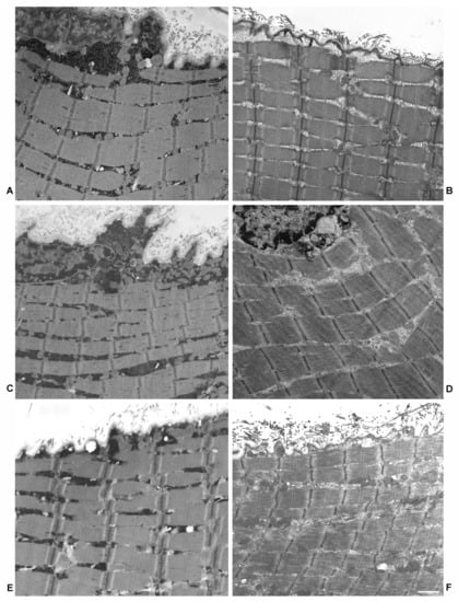Biopsy material derived from quadriceps muscle of 3 patients was fixed in 2.5% glutaraldehyde in 0.1 M sodium phosphate buffer (pH 7.3) and post-fixed with 2% osmium tetroxide in the same buffer. The specimens were washed in distilled water, dehydrated through an ascending series of ethanol, embedded in Epon-Araldite resin (Zeiss, Oberkochen, Germany) and oriented for longitudinal sectioning. Ultrastructural analysis was carried out on ultrathin sections after staining with uranyl acetate and lead citrate under the transmission electron microscope Zeiss EM 10 (Zeiss, Oberkochen, Germany).