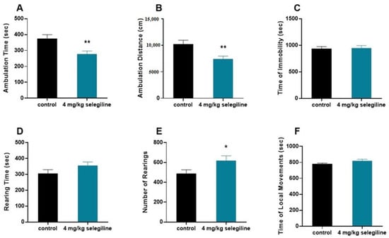 2.3. Effect of 4 mg/kg Selegiline on Locomotor Activity
