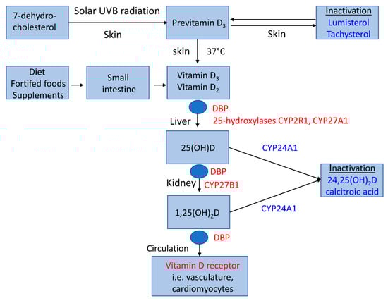 - Saponaro, F.; Saba, A.; Zucchi, R. An Update on Vitamin D Metabolism. Int. J. Mol. Sci. 2020, 21, 6573. [Google Scholar] [CrossRef] [PubMed]
