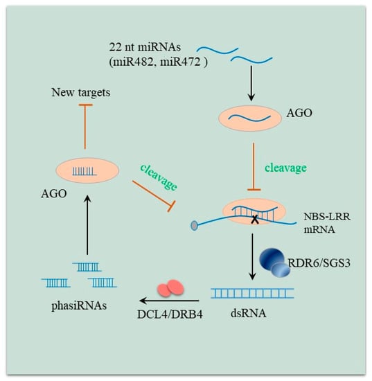 - Fei, Q.; Li, P.; Teng, C.; Meyers, B.C. Secondary siRNAs from Medicago NB-LRRs modulated via miRNA-target interactions and their abundances. Plant J. 2015, 83, 451–465. [Google Scholar] [CrossRef] [PubMed]