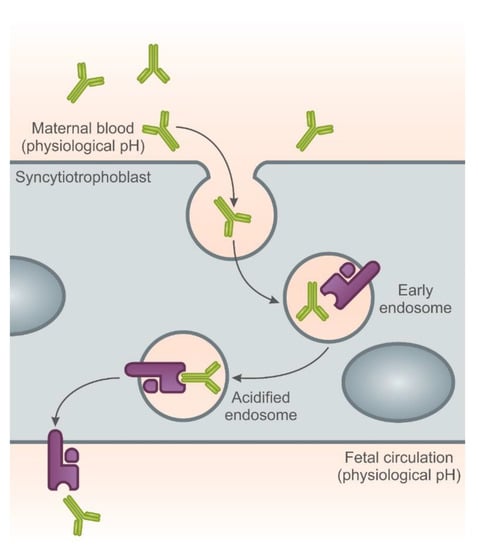- Simister, N.E.; Story, C.M. Human placental Fc receptors and the transmission of antibodies from mother to fetus. J. Reprod. Immunol. 1997, 37. [Google Scholar] [CrossRef]