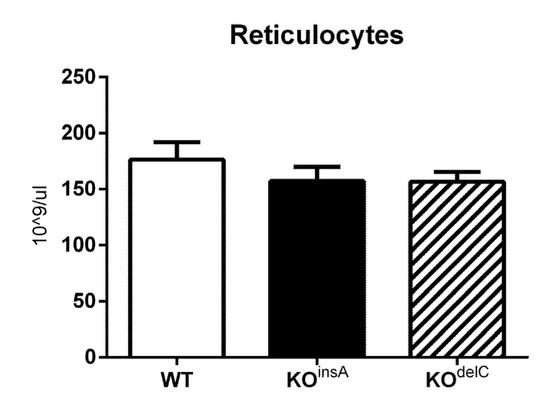 We further investigated if TAAR9 deletion affects erythropoiesis processes. In our study, we used an automatic analyzer to measure reticulocytes, the progenitors of red blood cells that detected them with a special RETIC solution for Advia2120i (Siemens, München, Germany). As presented in Figure 3, there were no significant differences between the three groups but a minor trend for a decrease in the number of reticulocytes was noted in both TAAR9-KO rat strains.