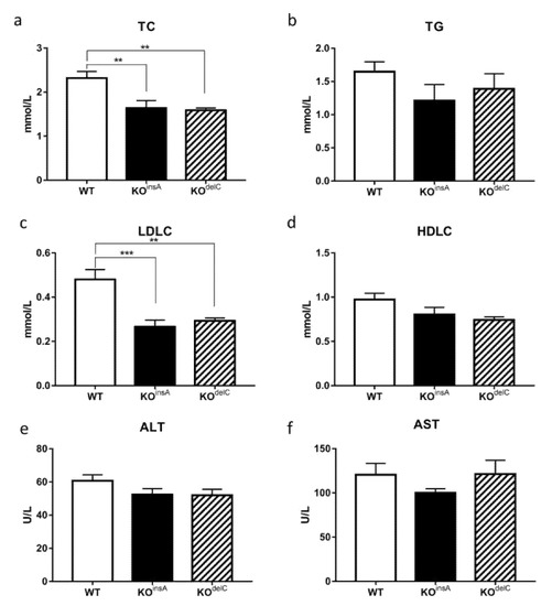 Conceptualization, R.Z.M., I.S.Z., N.V.A., and R.R.G.; methodology, R.Z.M., I.S.Z., N.V.A., and R.R.G.; formal analysis, R.Z.M., I.S.Z., N.V.A.; investigation, O.M.K., E.A.P., N.V.A. (generated knockout animals), R.Z.M., I.S.Z., S.R.K., E.V.E., L.G.K., E.G.B., E.A.Z., S.A.A. (performed the experiments with biochemical, hematological parameters), R.Z.M. (performed the genotyping and mRNA expression), A.N.V., R.Z.M. (RNASeq meta-analysis); resources, R.R.G.; data curation, R.Z.M., I.S.Z., N.V.A., R.R.G.; writing—original draft preparation, R.Z.M., I.S.Z., N.V.A., R.R.G.; writing—review and editing, R.Z.M., I.S.Z., S.A.A., A.N.V., N.VA., R.R.G.; visualization, R.Z.M., I.S.Z., N.V.A.; supervision, R.R.G., N.V.A.; project administration, R.R.G.; funding acquisition, R.R.G. All authors have read and agreed to the published version of the manuscript.