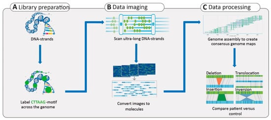 - Mantere, T.; Neveling, K.; Pebrel-Richard, C.; Benoist, M.; van der Zande, G.; Kater-Baats, E.; Baatout, I.; van Beek, R.; Yammine, T.; Oorsprong, M.; et al. Next generation cytogenetics: Genome-imaging enables comprehensive structural variant detection for 100 constitutional chromosomal aberrations in 85 samples. BioRxiv 2020. [Google Scholar] [CrossRef]