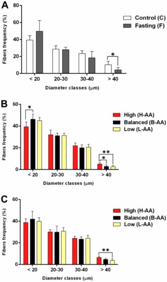 2.1. Fasting Followed by AA Supplementation Promotes Morphological Alterations in Skeletal Muscle In Vitro and In Vivo
